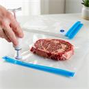 Začnete své sous vide vaření ihned po vybalení TESLA SousVide Stick MD400, nemusíte už nic dokupovat. Je dodáván s ruční vakuovací pumpou a dvěma sáčky s odvzdušňovacím ventilem, které lze opakovaně použít. Vakuové uzavření jídla uvnitř sáčku odstraní přebytečný vzduch a vlhkost, tak aby zachovala se přirozená chuť a nutriční hodnota jídla.